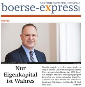 Der Börse Express hat unseren Geschäftsführer Paul G. Putz zum Thema „Unternehmensbeteiligungen abseits der Börse“ interviewt und einen spannenden Artikel…